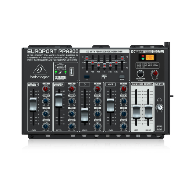 PAイベントに必要な機器を1つに収納したブリーフケースタイプのポータブルPAセット。KLARK TEKNIKの高性能マルチエフェクターやハウリングサプレッサーを内蔵し、軽量、コンパクトながら本格的な音作りが可能