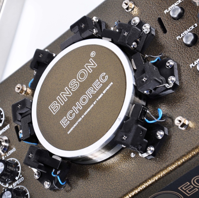 BINSON ECHORECは、T-REXのノウハウと技術により現代再現された本物の磁気ディスクを使用したマグネティックドラムエコーペダルです。